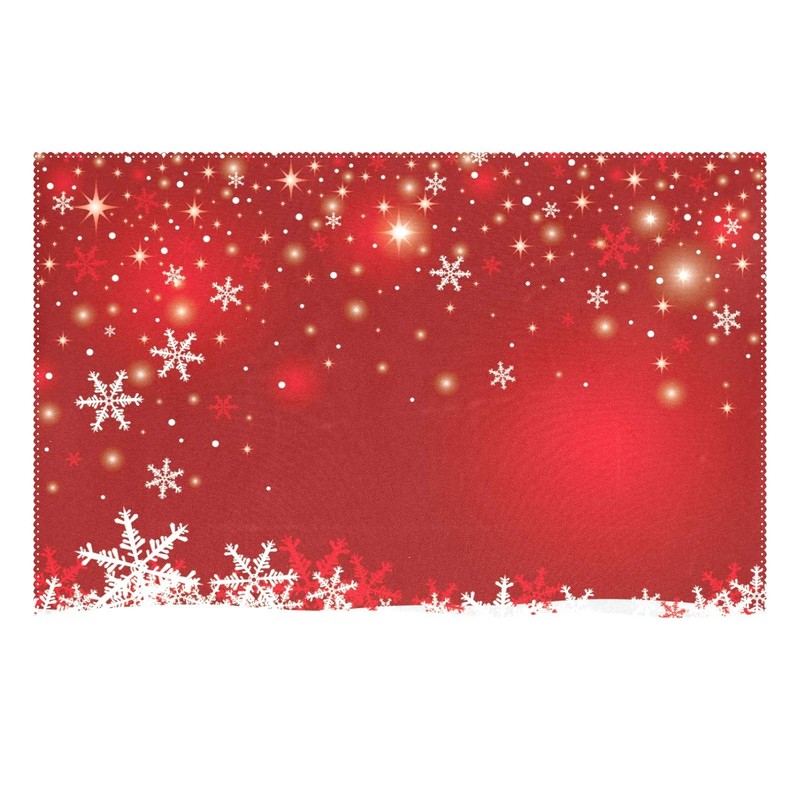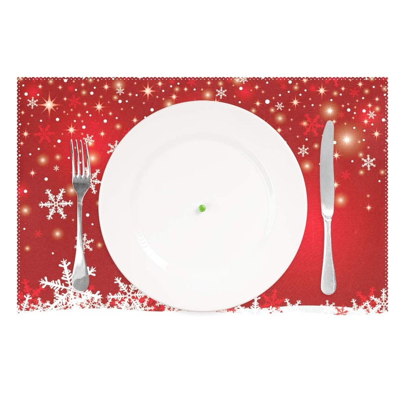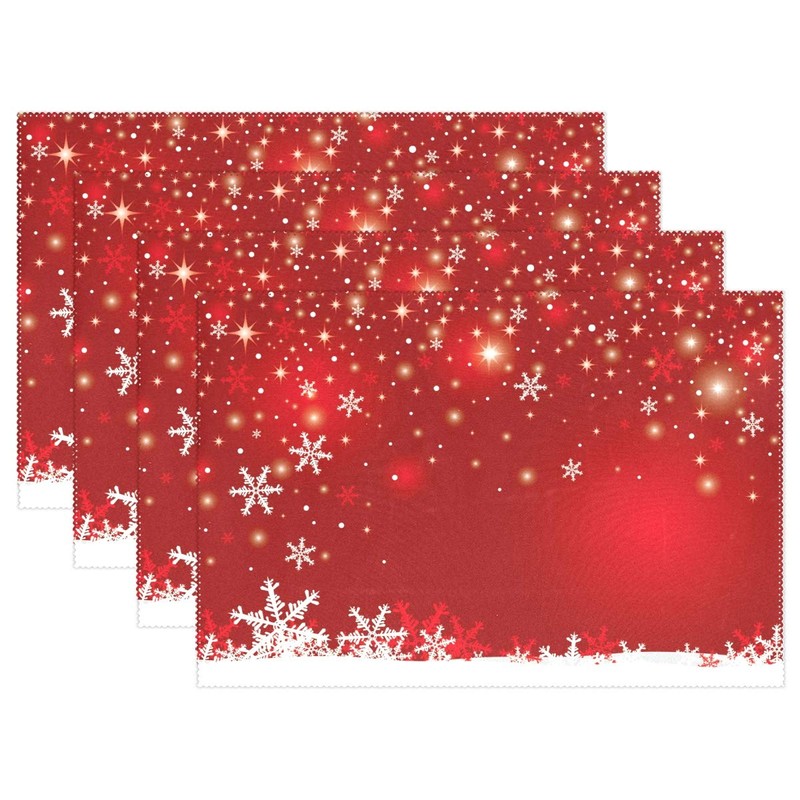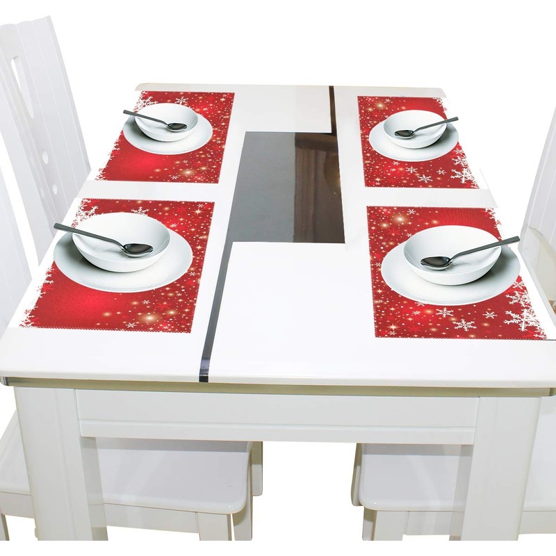 Christmas White Snowflake On Red Background Placemats Set of 6 Table Mat, Table mats Placemats Heat-resistant Stain Resistant Washable for Kitchen Dining Decoration 12" x 18"