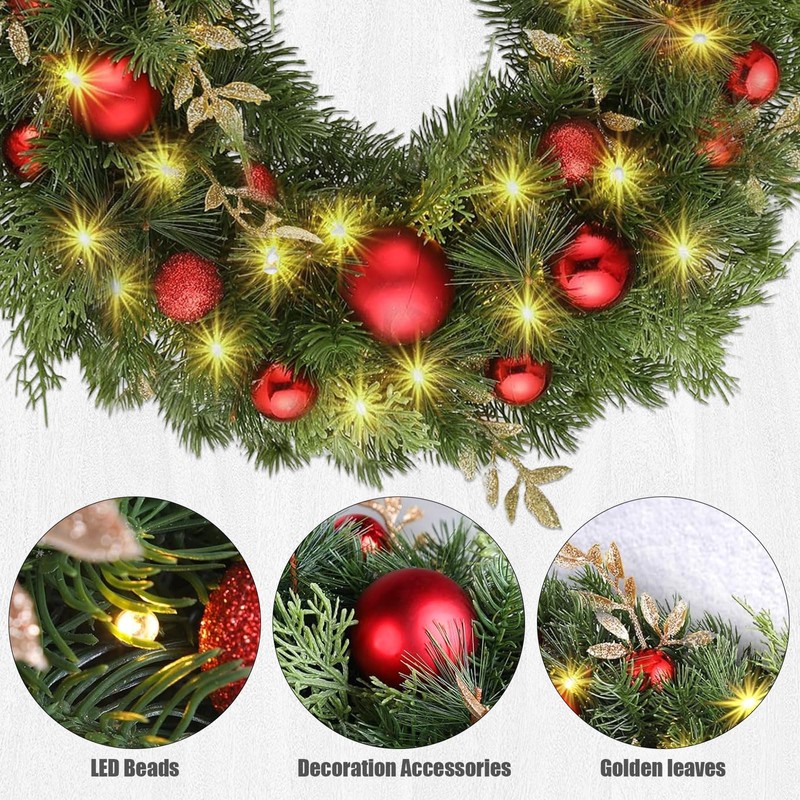 - Wide application: Christmas wreath decorations are reusable and durable, perfect for doors, walls, stairs, chimneys and anywhere indoors and outdoors, ideal decoration for family reunions, birthdays, weddings, Christmas parties, shops, gardens and other celebrations, and perfect for Christmas gifts.