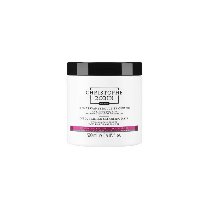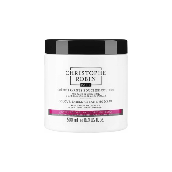 Christophe Robin Colour Shield Cleansing Mask With Camu-Camu Berries 500ml is a low-foaming cleansing mask that helps prolong the vibrancy of color-treated hair while nourishing and protecting hair's natural oils for a glossy, long-lasting radiance.