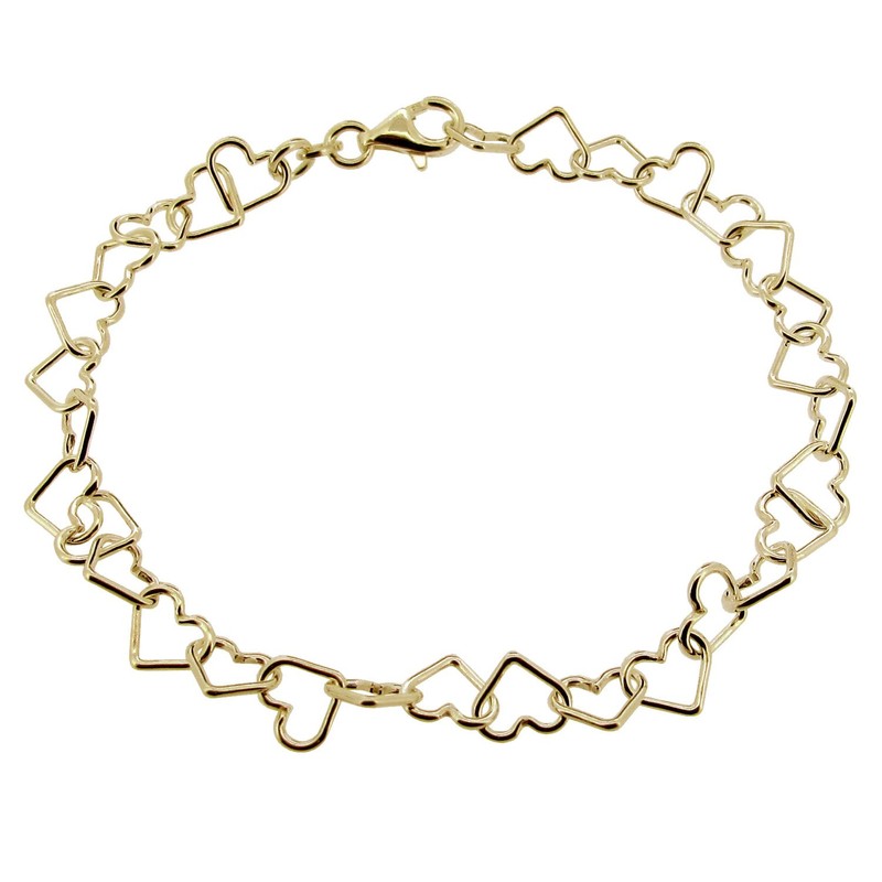 Christopher James of London CJoL - 9ct Gold Plated on Sterling Silver Ladies 11" (28cm) Heart Link Charm Anklet In Gift Box - 5.3g