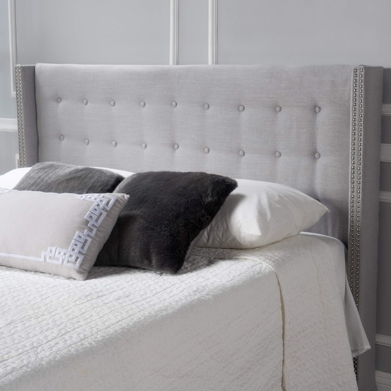 - This fully upholstered headboard is a great addition to any Bedroom. With a studded edge on the wings and button dimples on the headboard, This headboard is a statement for any Bedroom. The wings Add a life of their own, and will give you an Air of class around your bed, impressing anyone that take a peek into your Bedroom
