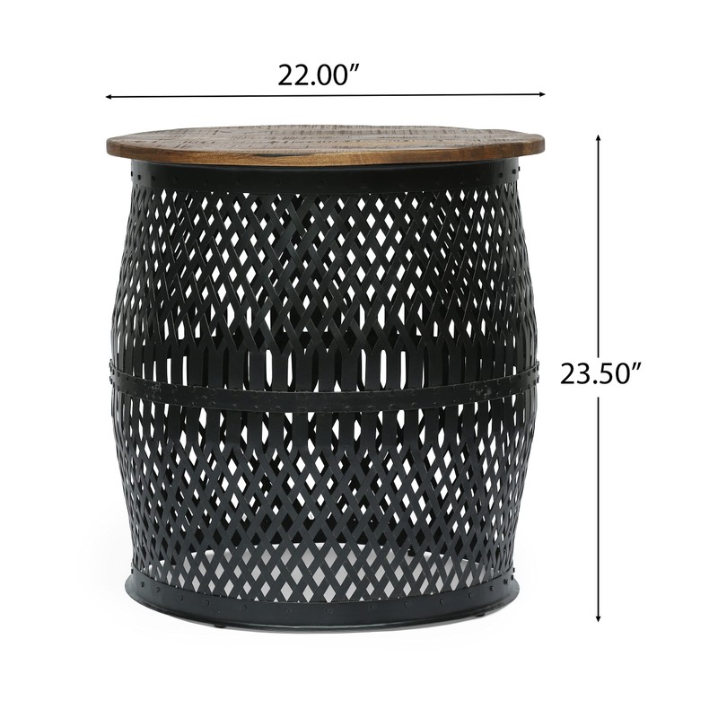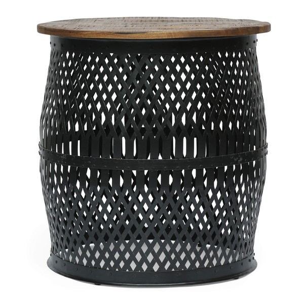 • MODERN INDUSTRIAL DESIGN: Our side table incorporates a lace cut metal frame into its construction to create an understated industrial design. With a combination of iron and smooth wood tabletop, this table offers a raw, unfinished look to your home.