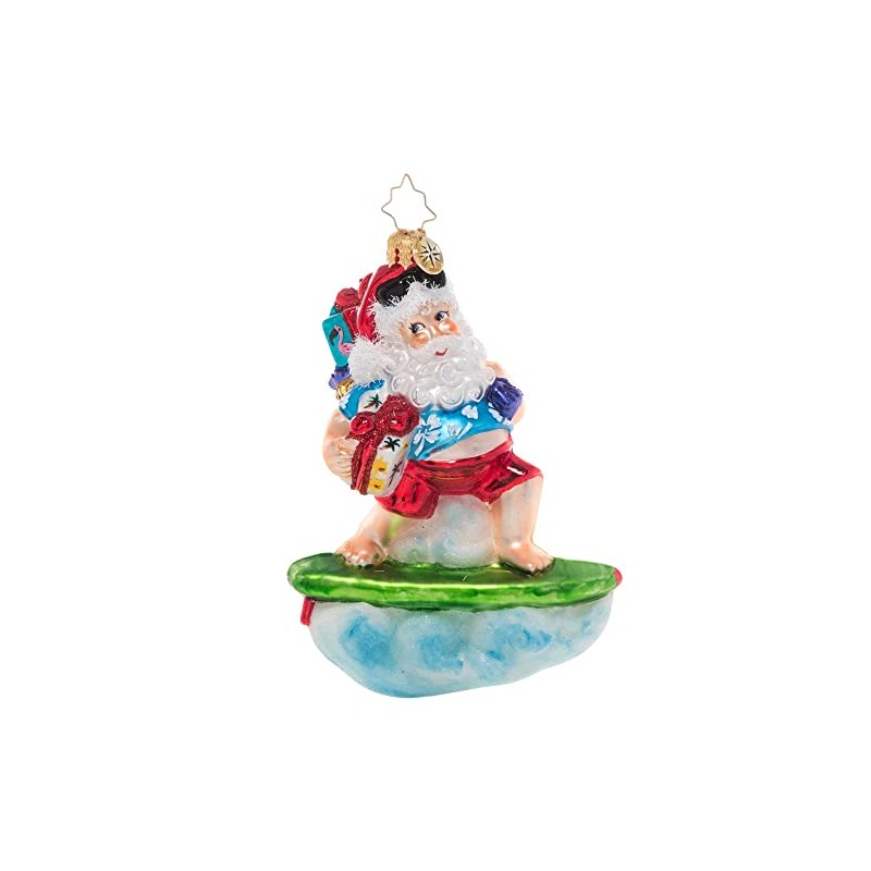 Christopher Radko Hand-Crafted European Glass Christmas Decorative Ornament, Surf's Up Santa