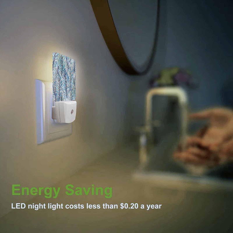 Chrobak LED Night Light,Abstract Tropical Leaves Pattern LED Night Light Plug into Wall with Dusk to Dawn Light Sensor White Energy Efficient Nightlight for Bedroom Bathroom Hallway LivingRoom Kitchen