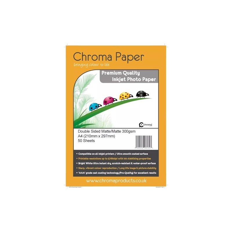 Chroma - A4 Duo Double Sided Matte/Matte Inkjet Photo Paper Craft Card Making - 300gsm (50 Sheets)