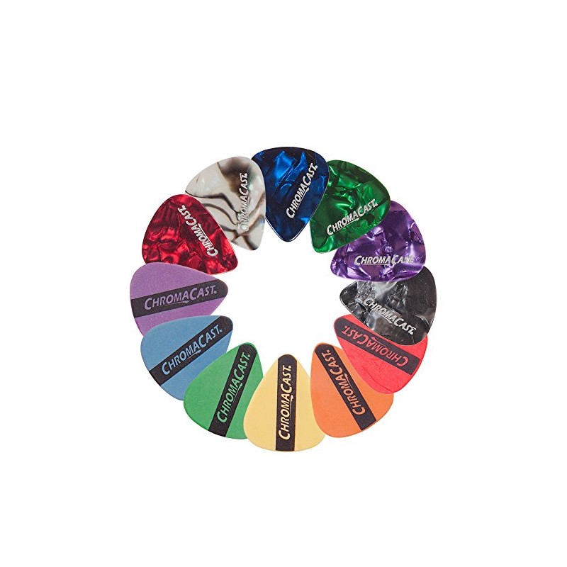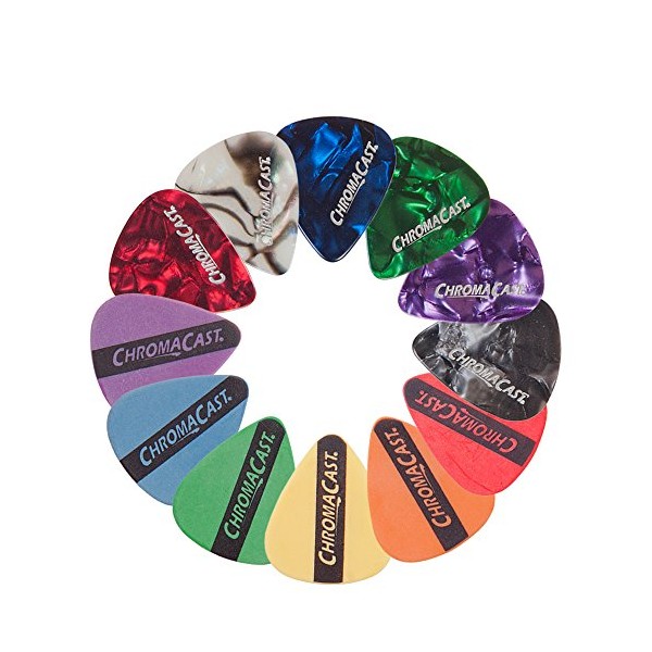 The ChromaCast Pick Sampler provides a taste of both the Celluloid and DuraPicks in the classic, standard guitar pick shape with a comfortably wide body and a rounded tip that prevents chipping and provides a warm, fat musical tone. This sampler includes a wide variety of gauges that will help each player find the exact pick that is perfect for their style.
