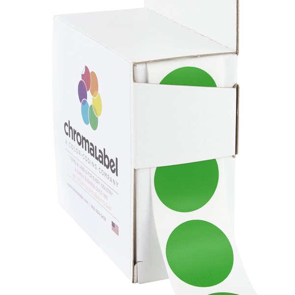 ChromaLabel 1 Inch Round Permanent Color-Code Dot Stickers, 1000 per Dispenser Box, Green