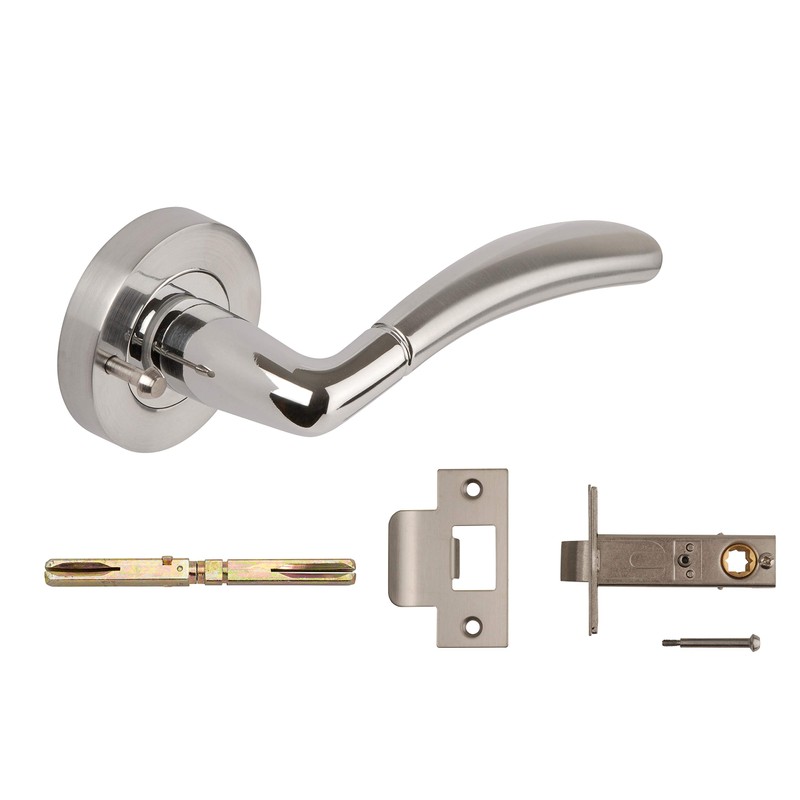 chromaline 3585-PRV Excel Architectural Titon Lever On Round Rose & Push Button Privacy Latch, Satin/Polished Chrome