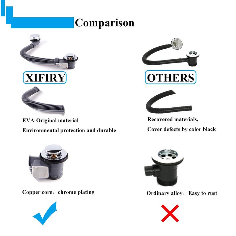 2. The bath drain pipe is 560mm long, which is suitable for over 95% of the bathtub. Before your purchase, please confirm the size.