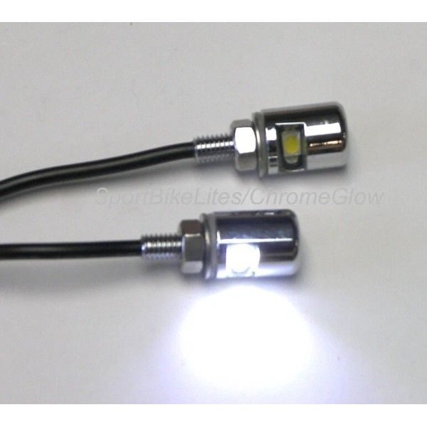 Chrome Glow White LED Motorcycle, Auto, Truck License Plate LED Light Bolts, Chrome, Pair