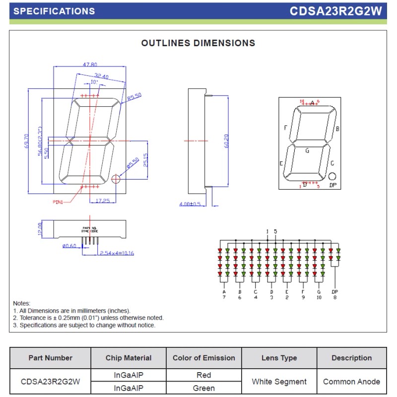 Chrome LED Large Seven Segment Display, Tri-Color 2.3 inch Digit (Pack of 2)