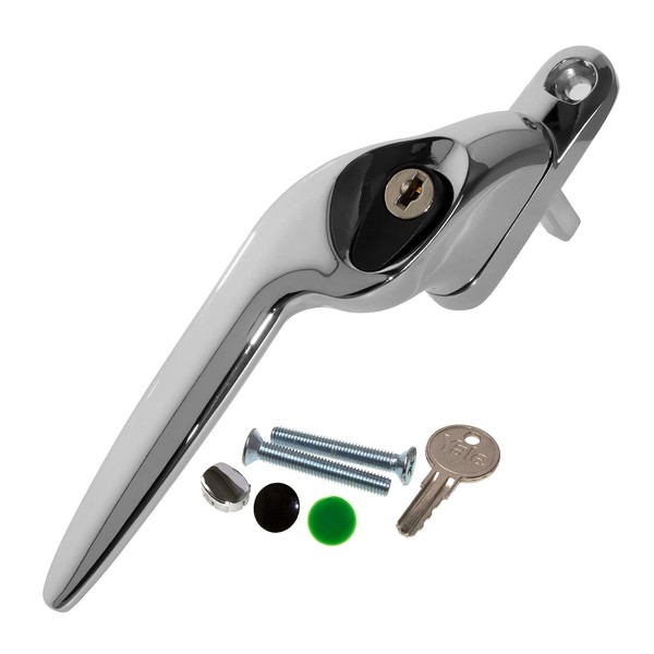 Chrome Left-Hand Yale UPVC Window Handle Cranked Double Glazing Universal Key Locking - 40mm