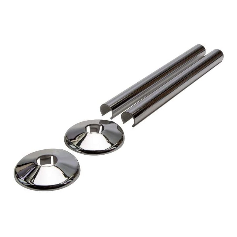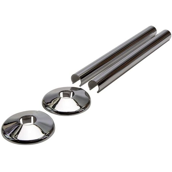 Chrome Radiator Pipe Covers SnapFit 2 Pack 200mm Long 15mm Pipe Central Heating Clip On Covers Snappit