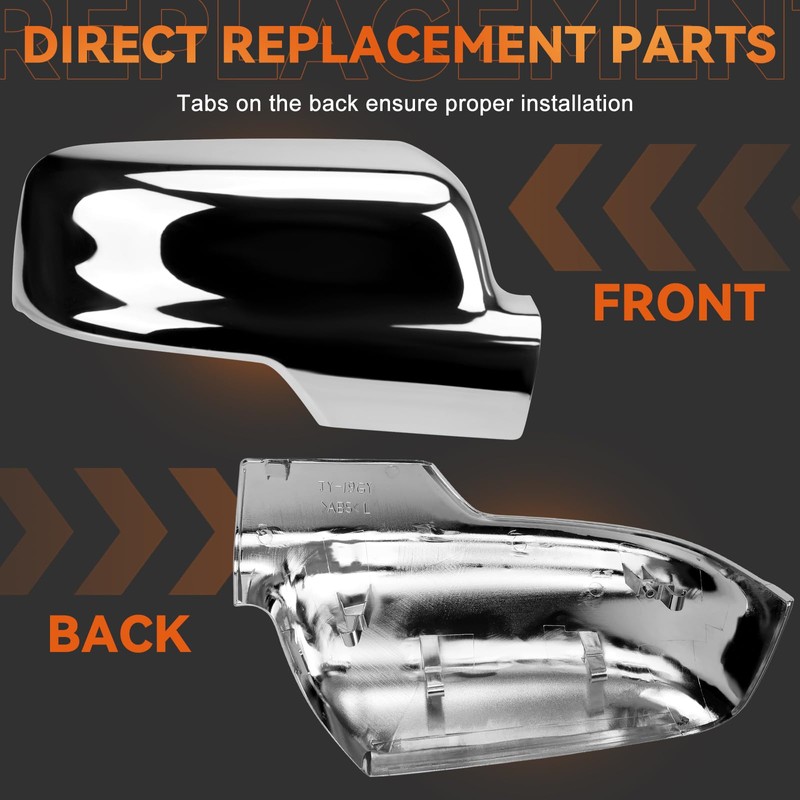 - Easy Installation: These are replacement mirror cover units, you need to remove the old mirror caps and replace with these new ones, clips into place for simple installation. Made to stay applied and brilliant for the life of your vehicle