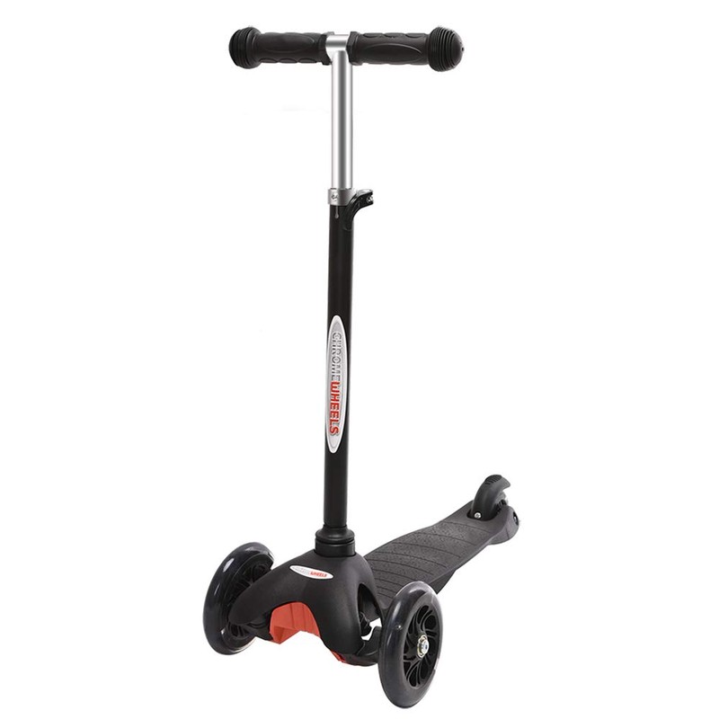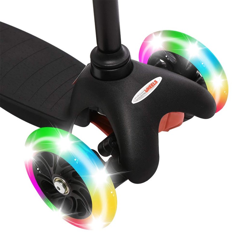 ChromeWheels Scooter for Kids, Deluxe 4 Adjustable Height 3 Wheels Glider with Kick, Lean to Steer with LED Flashing Light, Black
