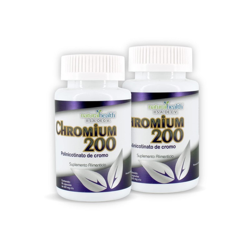 CHROMIUM 200, 2 FRASCO CON 90 CÁPSULAS 500 MG C/U. Polinicotinato de Cromo 200. (2).