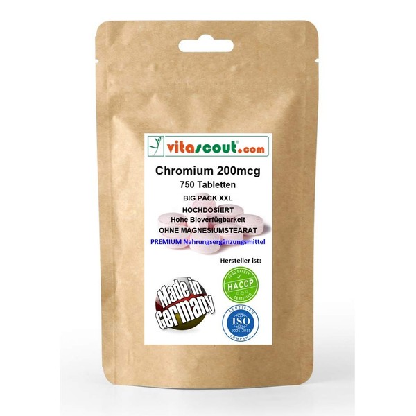 Chromium Picolinate 200 mcg – 750 Tablets – No Magnesium Stearate – Made in Germany