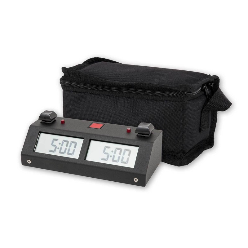 Chronos GX Digital Game Chess Clock - Button - Black with Carrying Bag