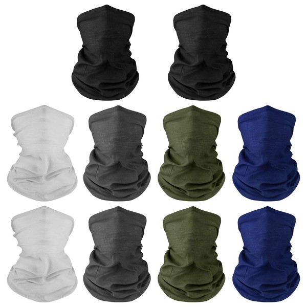 - Package: 5 colors neck gaiter, each color 2pcs total 10pcs, good protection with comfort can prevent the damage of dust, saliva, ultraviolet rays, keeps you cool in the sun and warm in cold weather
