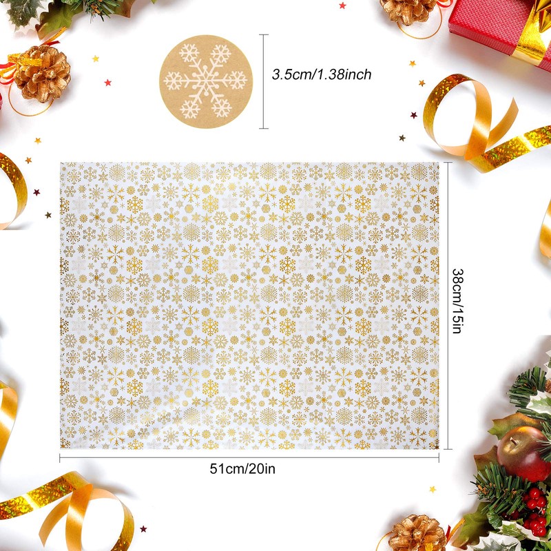 - Specification: gold snowflake wrapping paper size is 38 cm / 14.96 inchx51cm / 20 inch, you can also cut into appropriate size according to your requirements ,the snowflake stickers is 3.8 cm / 1.8 inch