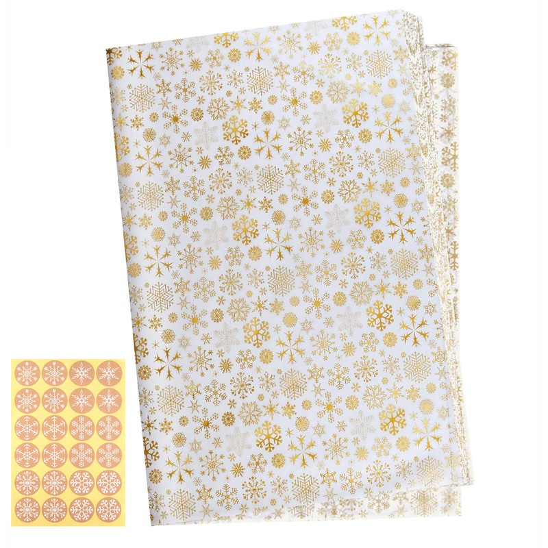 - "Exquisite design: the snowflakes tissue paper design simple and elegant for Christmas and winter decoration. they can be used to decorate gift baskets, gift bags, DIY crafts, etc. the matching snowflake stickers make it more convenient to use "