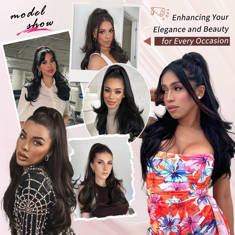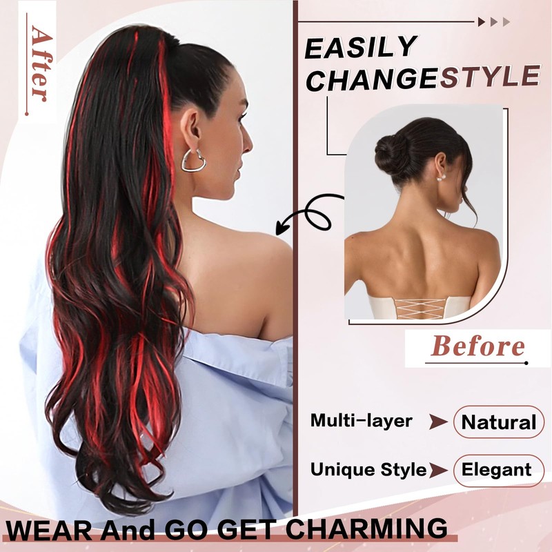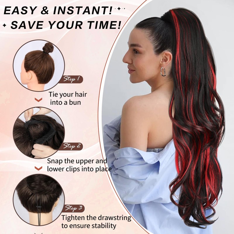 CHRSHN Ponytail Extension, Drawstring Ponytail Extension for Women 26 Inch Long Wavy Highlights Pony Tails Hair Extensions Synthetic Clip in Ponytail Hairpiece for Women(H1B/113)