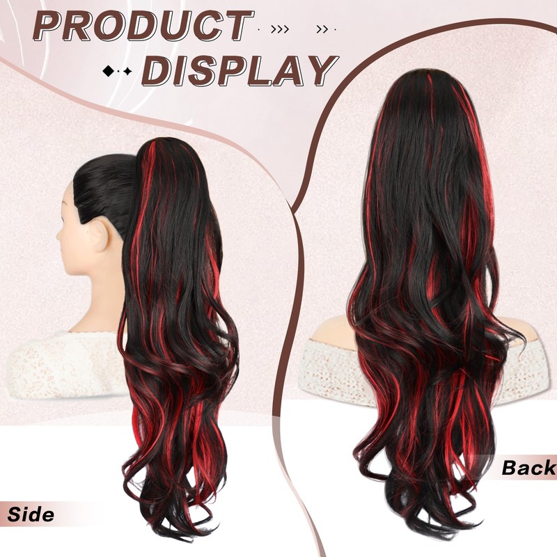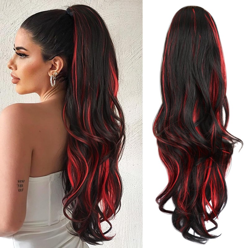 CHRSHN Ponytail Extension, Drawstring Ponytail Extension for Women 26 Inch Long Wavy Highlights Pony Tails Hair Extensions Synthetic Clip in Ponytail Hairpiece for Women(H1B/113)