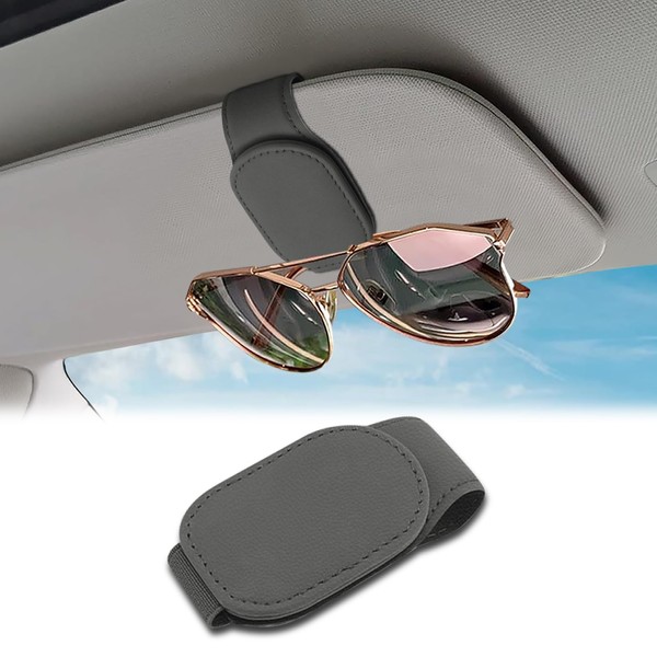 CHRYMUM Sunglasses Holders for Car Sun Visor, Car Glasses Holder, Magnetic Leather Sunglasses Holder and Ticket Card Clip, Ticket Clip Eyeglasses Mount Car Visor Accessories Fit Eyeglasses (Gray)