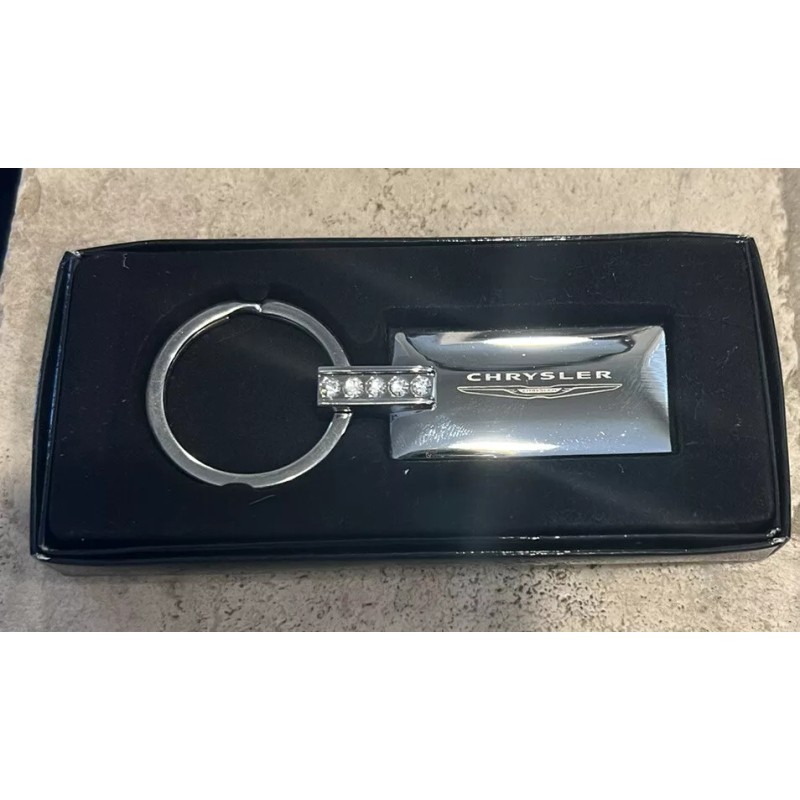 Chrysler Jeweled Rectangular Silver Key Ring NEW IN BOX