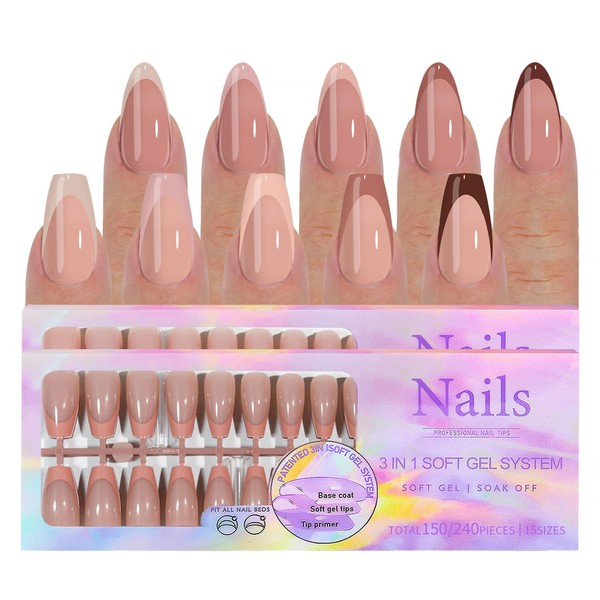 - What You Get: 300PCS french tip press on nails, 5 colors (brown, light brown, nude flesh, nude pink, nude gray), 2 styles (square and pointed), 30 pieces per color per style, 15 sizes in total.