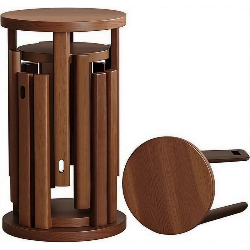 CHSSIH Stackable Stools Set of 4 - Walnut Stacking Stools/Side Table, Nesting Hidden Design, No Assembly Required for Dining & Living Room, Small Spaces, 18" H