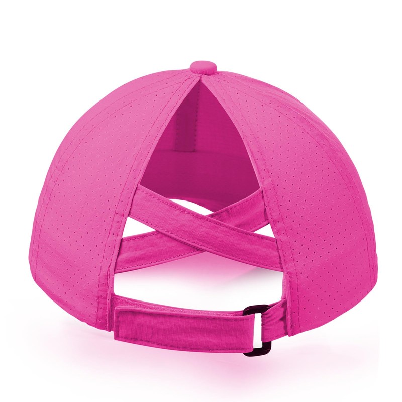 CHUANGLI Girls Criss Cross Ponytail Hat Reflective Lightweight Baseball Cap for Kids Quick Drying Mesh Sports Hat for Age 7-12 Rose