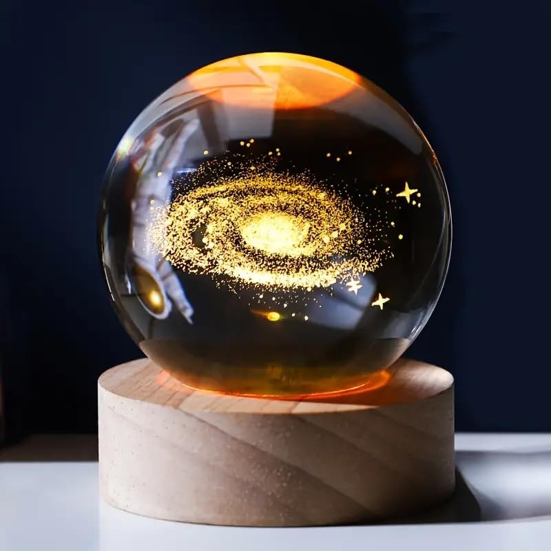 - UNIQUE DESIGN: Crystal ball night light featuring a mesmerizing 3D galaxy design with golden stars and spiral patterns, creating an enchanting cosmic atmosphere