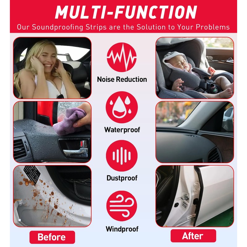 Experience peace of mind with our durable rubber door seal strip, designed to resist wind, dust, cold, water, and noise. Whether you're sealing a truck topper seal, car door rubber seal, or garage door seal, our weatherstripping ensures reliable protection against external elements. Skip the complex installation process with our user-friendly design—measure, cut the door rubber seal strip, peel off the adhesive backing, place, and press firmly to secure.Its extra thick door weather stripping properties ensure longevity and efficiency. Whether for garage weather stripping bottom applications or car door weather stripping solutions, our rubber weather stripping door seal is your go-to choice. Enhance your automotive weather stripping and garage door seals bottom rubber with our premium-quality product, designed for durability and easy installation.