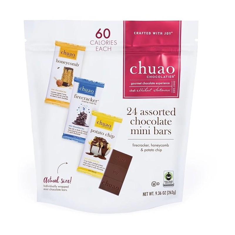 Chuao Chocolatier 24 Assorted Mini Chocolate Bars – Firecracker, Honeycomb & Potato Chip, 9.3 oz