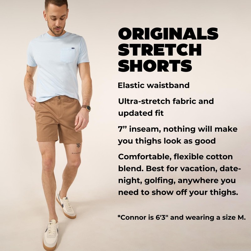 - CHUBBIES ORIGINAL MENS SHORTS CASUAL: Introducing the Chubbies Original Men’s Casual Shorts, perfect for those who love versatile khaki shorts men can wear anywhere. With a 7” inseam, elastic waistband, and ultra-stretch cotton blend, these chubbies shorts for men fit any occasion. Whether you're on vacation, golfing, or just relaxing, these shorts for men offer a stylish look. Show off your mens casual shorts style and stand out wherever you go!
