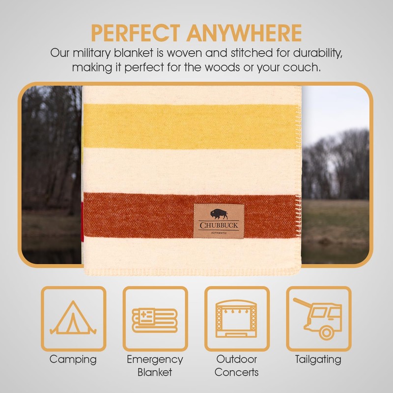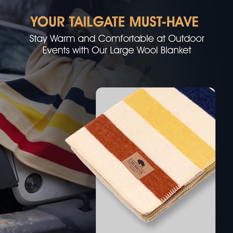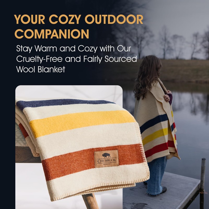 - STYLISH COZY BLANKET: Our Chubbuck wool camp blanket is crafted from 100% wool fabric. Our wool blanket offers unmatched warmth and comfort. Loom-woven and hemmed on all sides with contrast lock stitching, our 100 % wool blanket is an essential and stylish warmer blanket companion for your adventures or blankets for camping.