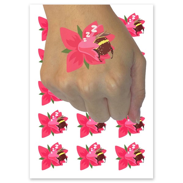 Chubby Bumblebee Sleeping In Flower Nap Temporary Tattoo Water Resistant Fake Body Art Set Collection - 15 2" Tattoos (1 Sheet)