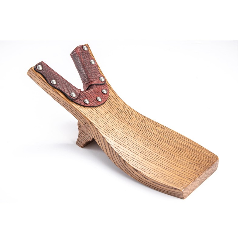 - HANDMADE SOLID OAK AND PREMIUM LEATHER - Chuck’s Woodbarn simple yet elegant Boot Jack is handcrafted using steam-bent oak wood accented with high-quality 5 oz genuine bison leather. The yoke opening is leather lined to protect boots and shoes and prevent scuff marks and stains. Heavy-duty boot puller for all boot types and stylish enough to proudly display by any door.