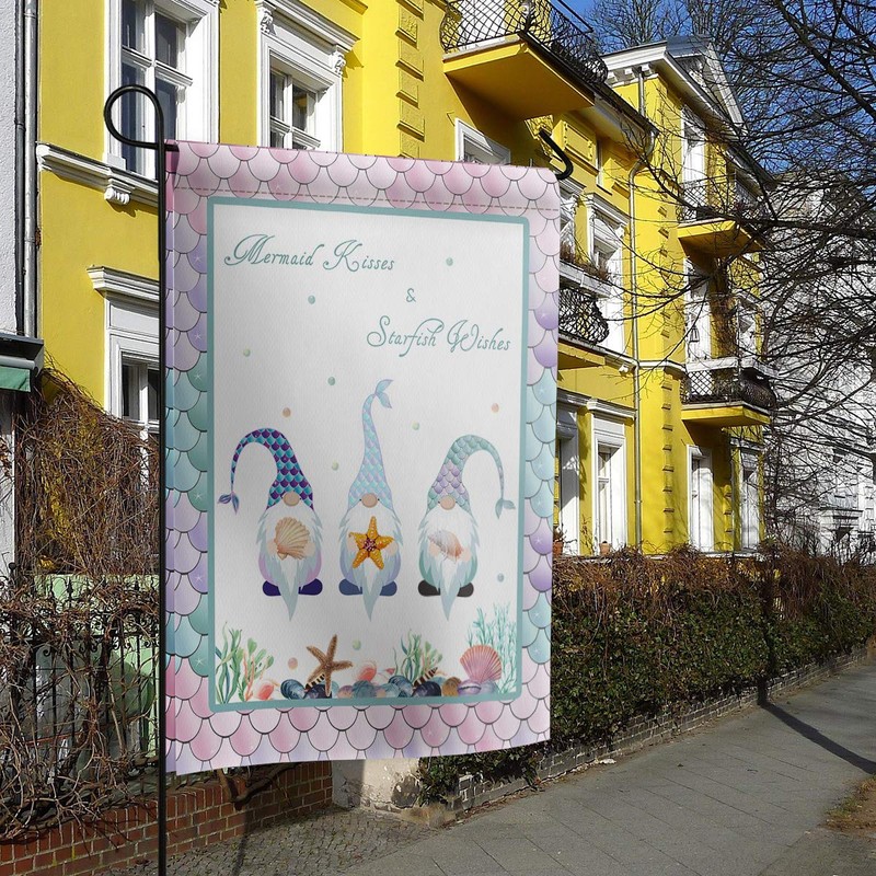Chucoco Welcome Garden Flag Ocean Theme Gnomes with Starfish and Shell, Double Sided House Flags All Seasons Yard Decoration Mermaid Scale Banners for Outdoor Indoor 12x18In