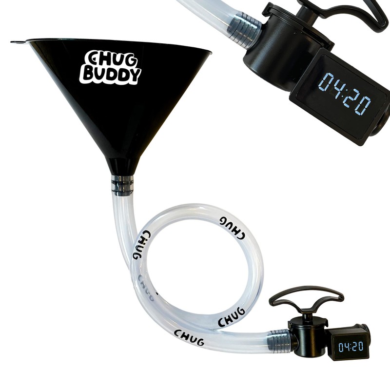 - THE HIT OF EVERY PARTY: Challenge your buddies to a chugging contest with the Chug Buddy beer bong with a built-in digital TIMER! Who is the speed champ?