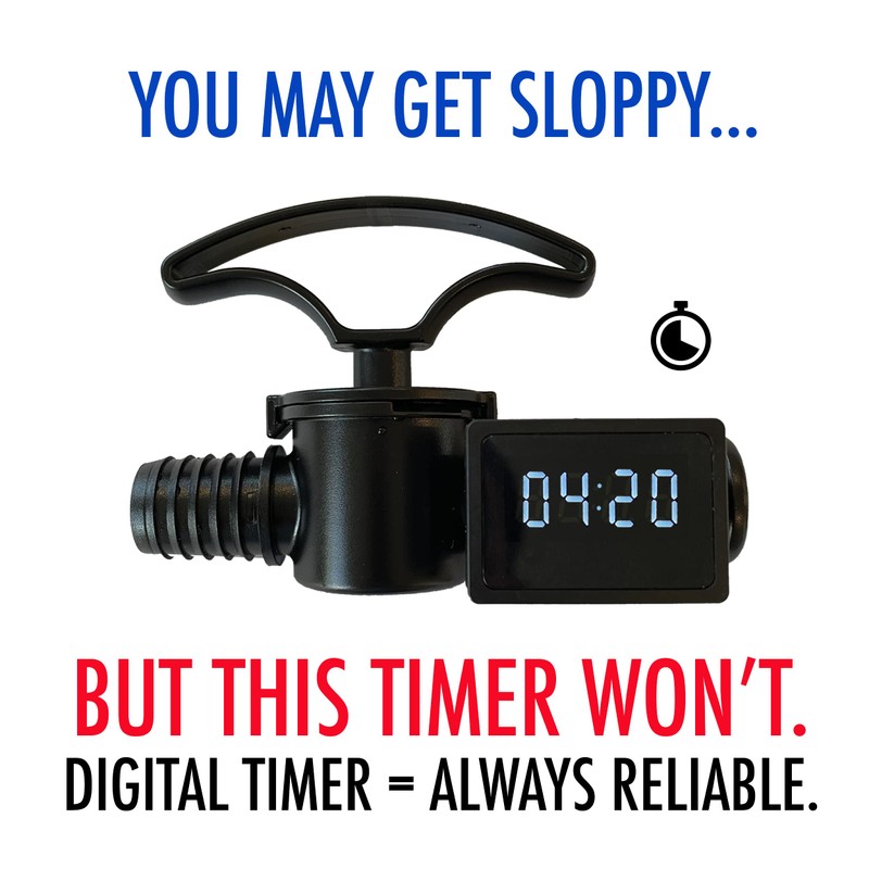 - HOW IT WORKS: A digital timer is attached to the mouthpiece. When the valve is opened and the beer starts flowing, it triggers the timer to begin counting. Once the flow stops, the timer stops! Keep track of your personal bests!