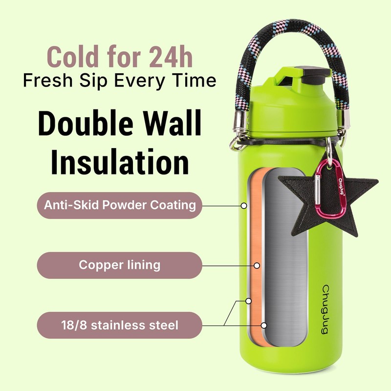 This isn’t just a bottle—it’s a vibe. With its bold colors, detachable star charm, and a rugged carabiner clip, it adds personality to your every outing. Want to make it even more “you”? Add your own keychain or charm to create a water bottle with straw that speaks your language.