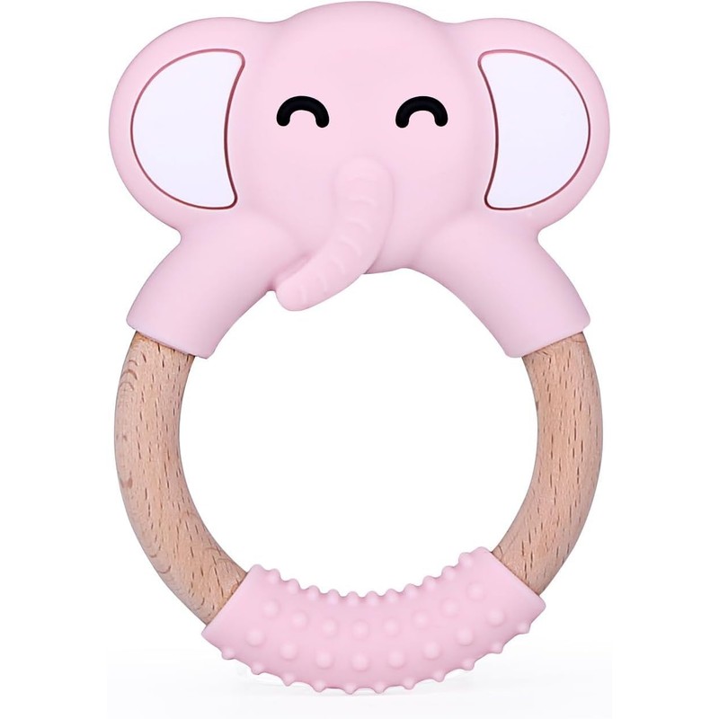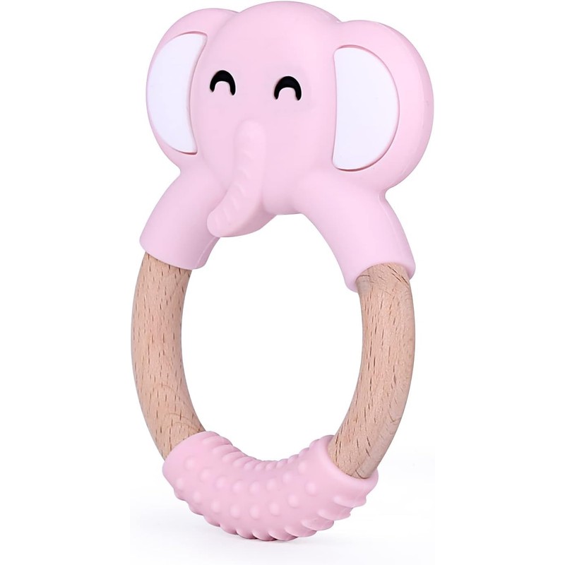 Chummies | Mordedor Elefante de Silicona y Madera (ROSA)