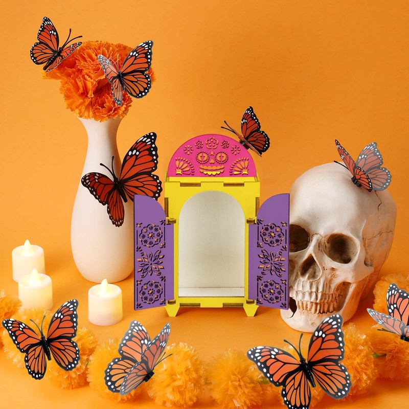 - Enhancing the Ambiance for Remembrance: the Day of the Dead shadow box featuring Mexican inspired patterns with a wealth of Day of the Dead elements, matched with vibrant Marigold flowers, 3D orange and black butterflies, LED candle lights that add a warm, inviting glow to your altar, enhancing the ambiance for remembrance