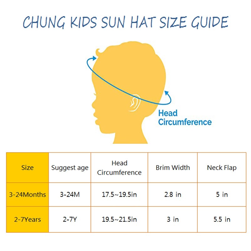 - Tamaño ajustable para crecer con tus hijos: este sombrero de sol para niños pequeños tiene dos tamaños proporcionados: talla S para 3-24 meses (circunferencia de la cabeza 18.1-19.7 pulgadas); talla M para 2-7 años (circunferencia de la cabeza 19.7-21.3 pulgadas). La hebilla elástica detrás del sombrero es ajustable para el tamaño más cómodo. La edad es solo para referencia, es de acuerdo con la circunferencia de la cabeza de tu bebé y elige un tamaño de sombrero de 0.8 a 1.6 pulgadas más grande que la circunferencia de la cabeza de los niños.