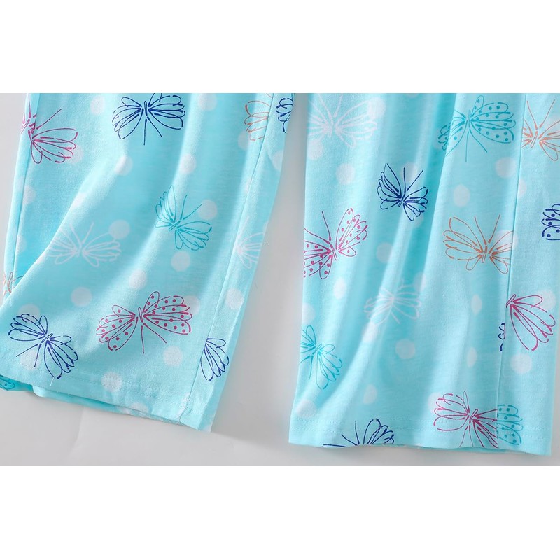 CHUNG Women Cotton Blend Pyjamas Set Short Sleeve Top Capri Pants Plus Size S-3XL Sleepwear Nighties Blue Butterfly, 2XL