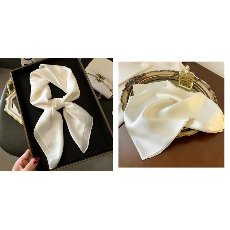 CHUNG Women's Satin Head Scarf Emulation Silk Handbag Hair Ribbons Bandanas Scarves SolidSquare-CreamWhite