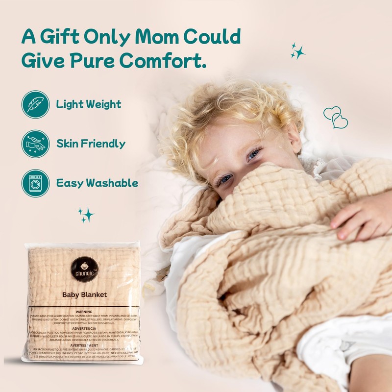 - Gentle Comfort for Little Ones: Designed with a 100% cotton muslin front and ultra-soft minky fleece back, this soft baby blanket is breathable, cozy, and perfect for newborns, infants, and toddlers.