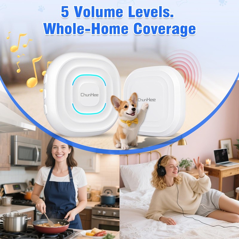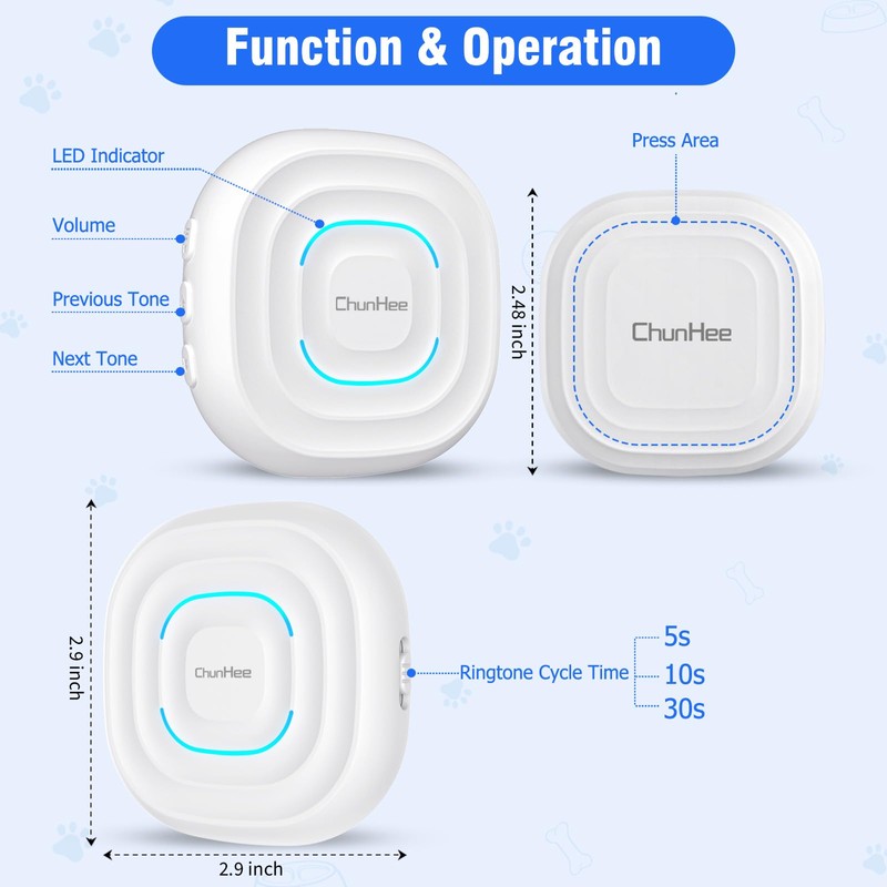 ChunHee Dog Door Bell for Potty Training –Smart Wireless Dog Bell to Go Outside, 500Feet with IP55 Waterproof, 32 Melodies & 5 Volume Levels(1 Receiver + 2 Buttons)